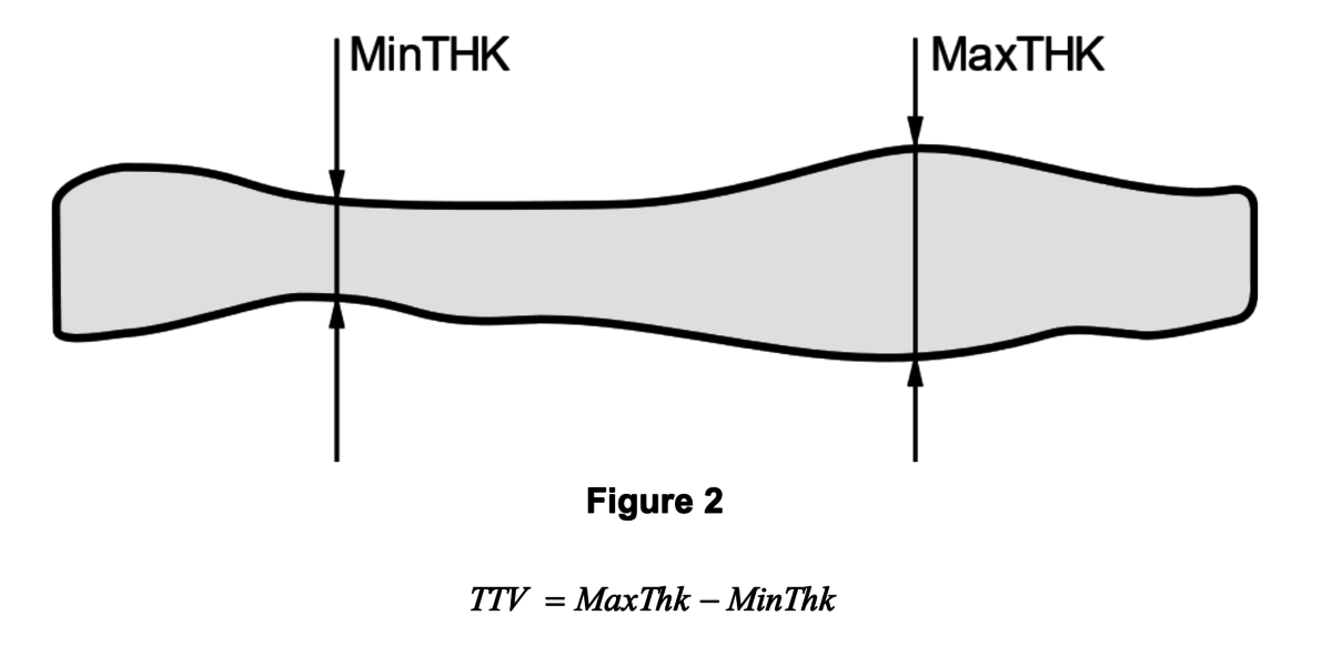 最小、最大厚度 (MinThk, MaxThk) 和总厚度变化 (TTV) = (GBIR)