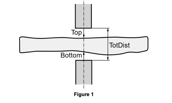 给定传感器对的晶片厚度由总距离减去底部传感器距离再减去顶部传感器距离的差值得出。